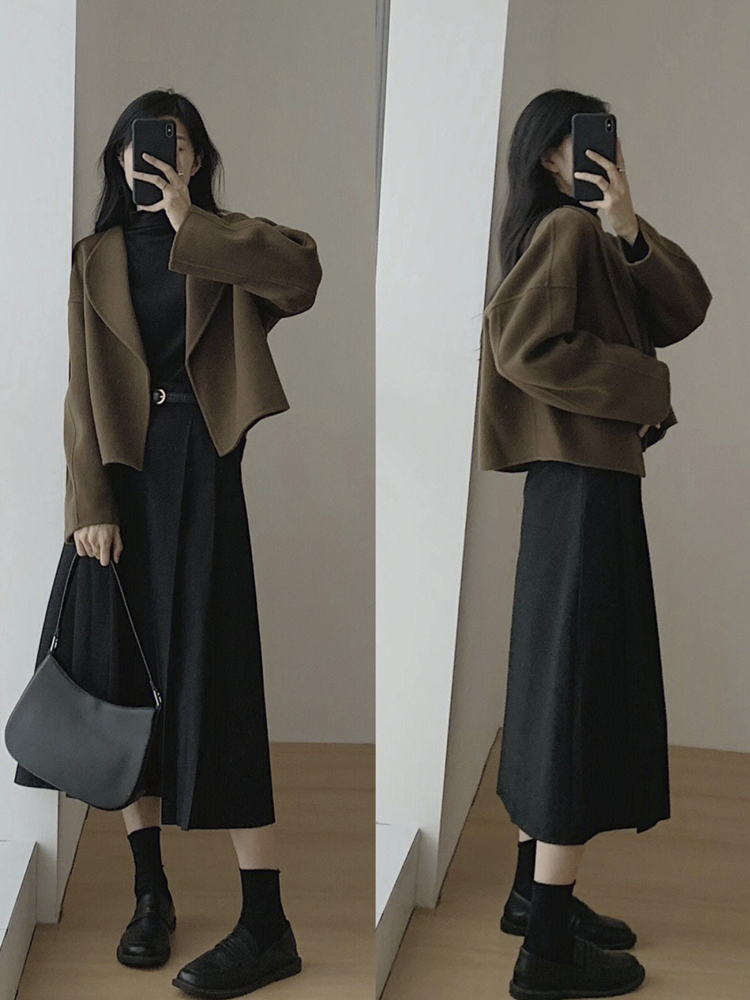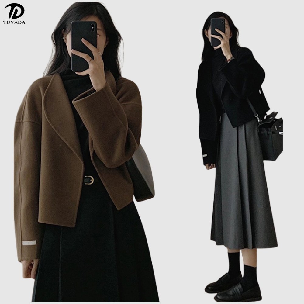 Áo khoác dạ cao cấp kèm chân váy xòe Tuvada - ADN71