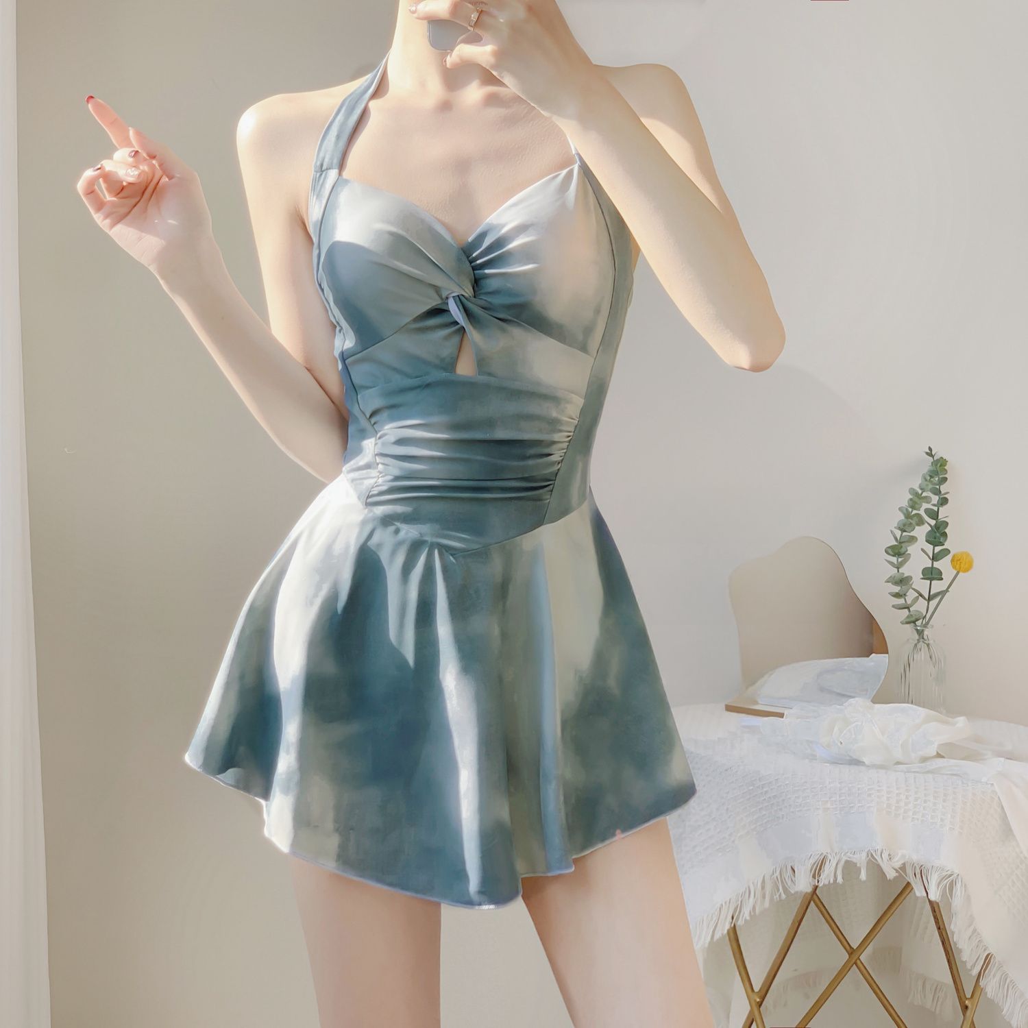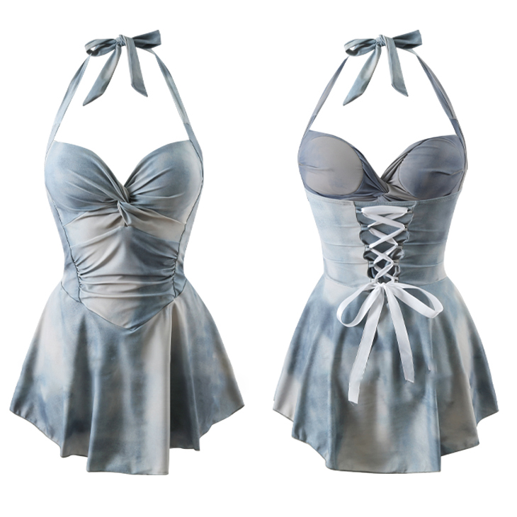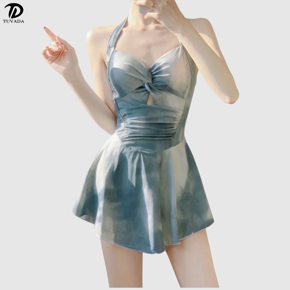 Đồ bơi nổi bật với họa tiết loang xanh tạo sự mát mẻ và độc đáo. Thiết kế liền mảnh giúp ôm gọn vùng eo và bụng một cách tinh tế. Phần cúp ngực có đệm mút có sẵn giúp nâng đỡ và tạo form vòng 1 đầy đặn hơn. Váy có thể có chi tiết nhún bèo ở hông hoặc vai, tăng thêm vẻ nữ tính, duyên dáng. Đây là lựa chọn hoàn hảo cho những cô nàng muốn một vẻ ngoài vừa cá tính, vừa duyên dáng khi đi biển.