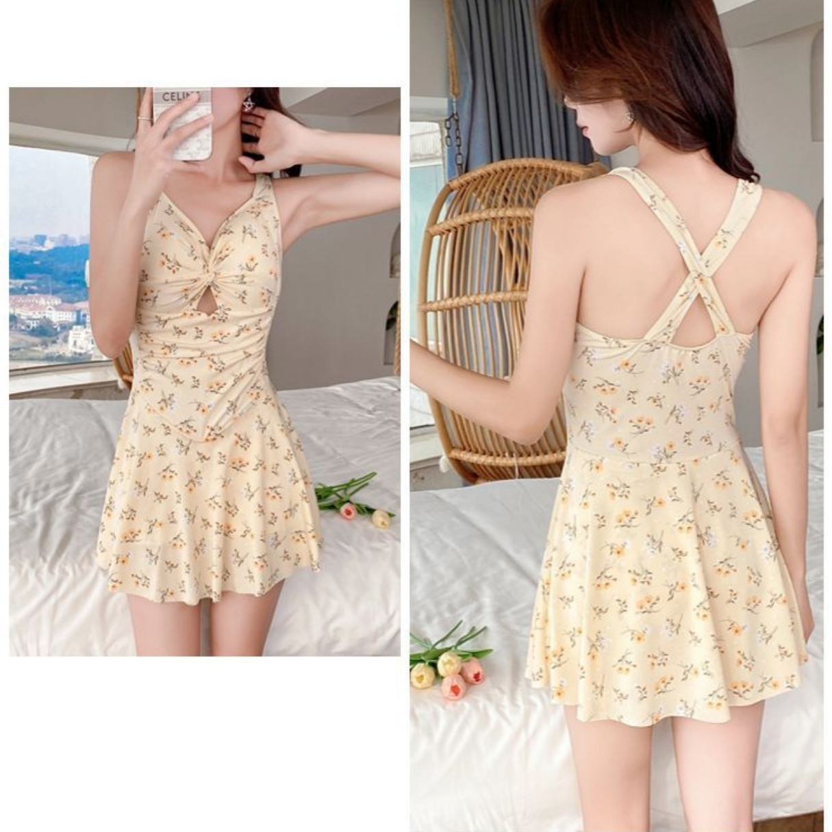Bikini 1 mảnh họa tiết hoa nhí có đệm mút Tuvada - BHV122 là mẫu đồ bơi liền thân mang phong cách ngọt ngào, Vintage và nữ tính của Hàn Quốc. Thiết kế này lý tưởng cho những cô nàng yêu thích sự kín đáo, duyên dáng nhưng vẫn muốn có những chi tiết nhấn nhá gợi cảm.