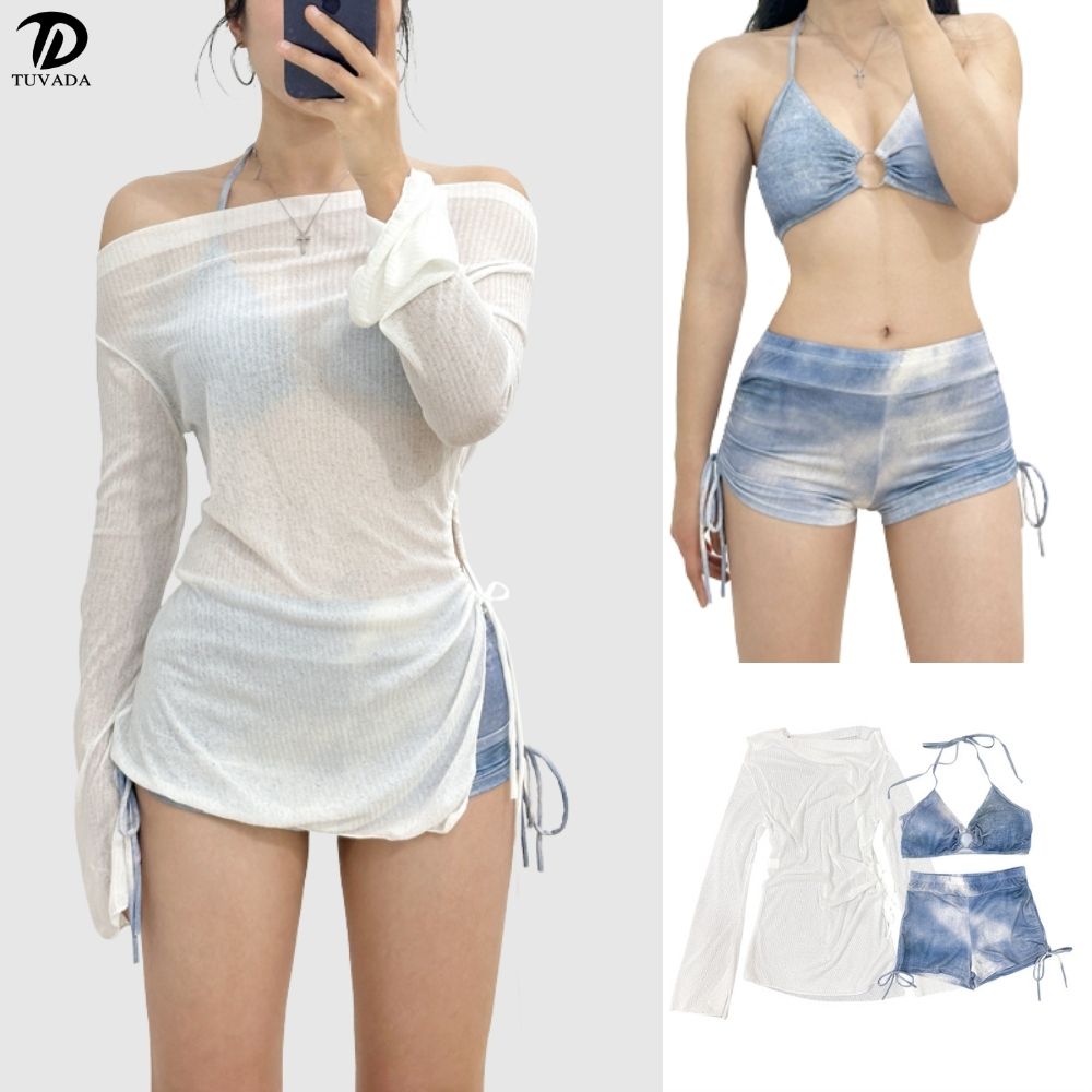 Combo 3 món: áo bikini – quần bikini – áo choàng ngoài đồng bộ.