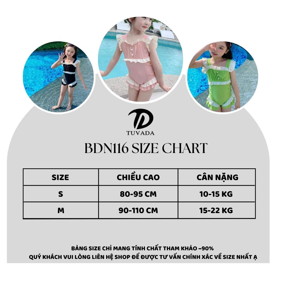 Bikini cho bé gái bánh bèo kín đáo Tuvada - BDN116 là mẫu đồ bơi liền thân được thiết kế riêng cho các bé gái, mang phong cách ngọt ngào, dễ thương và kín đáo, an toàn. Sản phẩm này không chỉ giúp bảo vệ làn da nhạy cảm của bé mà còn khiến bé trông như một nàng công chúa nhỏ khi đi bơi hay đi biển.