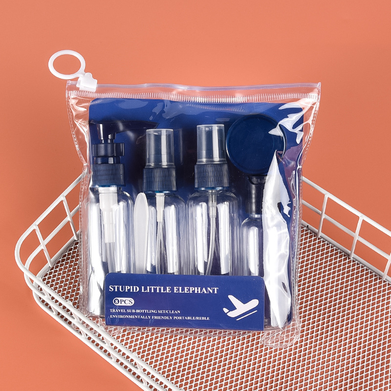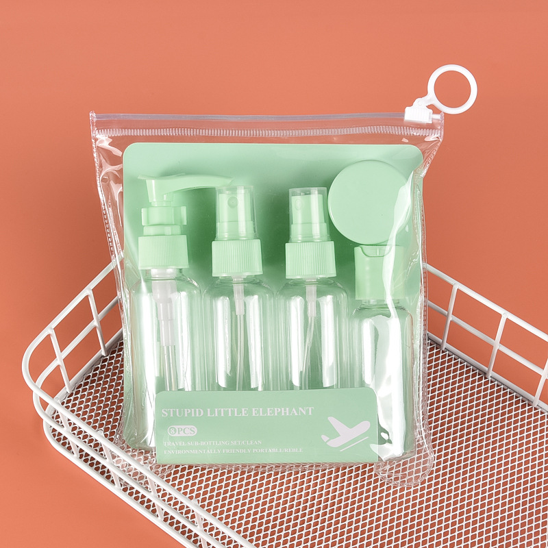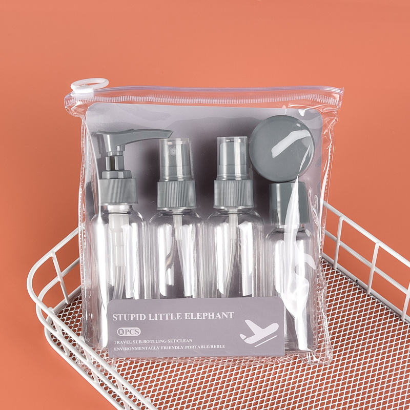 Bộ sản phẩm bao gồm 5 món cơ bản (Giả định: 2 chai nhấn/nắp lật, 2 hũ đựng kem, và 1 dụng cụ chiết/muỗng), được làm từ chất liệu nhựa an toàn, cao cấp, bền bỉ và chống rò rỉ tuyệt đối. Các chai lọ có kích thước nhỏ gọn, đạt tiêu chuẩn hành lý xách tay của các hãng hàng không. Đi kèm là túi/hộp đựng trong suốt giúp sắp xếp gọn gàng và dễ dàng kiểm tra.
