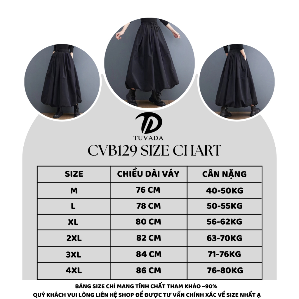 Thấu cảm nhu cầu đơn giản nhưng khác biệt - Tuvada Fashion mong muốn được đem đến những sản phẩm thời trang nữ như chân váy, chân váy dài, chân váy đen, chân váy xòe, chân váy đuôi cá, chân váy nữ, chân váy dáng dài đầm len, áo len, bikini, đồ lót nữ, phụ kiện. Shop đặt uy tín và chất lượng sản phẩm lên hàng đầu nên các bạn cứ yên tâm nhé.Chân váy dài dáng phồng có bigsize Tuvada, chân vây đen dáng bí bồng bềnh xòe - CVB129Bảng size xem trong phần ảnh mô tả.- Chân váy dài đen nữ dáng bí bồng bềnh là item thời trang không thể thiếu trong tủ đồ của những cô nàng yêu thích phong cách nhẹ nhàng, thanh lịch. Với thiết kế bồng bềnh, bay bổng, chân váy này mang lại vẻ đẹp duyên dáng và tinh tế cho người mặc. Được làm từ chất liệu cotton pha với spandex mềm mại và co giãn, chân váy không chỉ tôn dáng mà còn mang lại cảm giác thoải mái suốt cả ngày dài. Sản phẩm có nhiều size, phù hợp với nhiều dáng người, giúp bạn dễ dàng chọn lựa được kích cỡ phù hợp để tự tin khoe vẻ đẹp của mình. Chất liệu luôn giữ được phom dáng chuẩn, ôm vừa vặn cơ thể mà không gây cảm giác bó chặt hay khó chịu. Độ co giãn giúp chân váy dài phù hợp với mọi dáng người, từ người mảnh mai đến người đầy đặn.- Chân váy dài được thiết kế theo dáng bí – một kiểu váy bồng bềnh nhẹ nhàng, giúp tạo nên vẻ ngoài duyên dáng và nổi bật. Dáng bí của váy giúp che khéo những khuyết điểm ở phần hông và đùi, tạo cảm giác vòng eo thon gọn và dáng người cân đối hơn. Đây là kiểu váy lý tưởng cho những cô nàng muốn tạo ấn tượng nhẹ nhàng nhưng vẫn độc đáo trong phong cách.- Chân váy có độ dài từ trên đến ngang mắt cá chân, mang lại vẻ thanh lịch, dễ dàng phối hợp với các loại áo khác nhau như áo sơ mi, áo thun hay áo kiểu. Độ dài này giúp chân váy phù hợp với nhiều hoàn cảnh, từ đi làm, dạo phố cho đến các buổi hẹn hò hay gặp gỡ bạn bè. Với thiết kế dài, váy còn giúp che chắn tốt trong những ngày thời tiết mát mẻ hoặc se lạnh. Chân váy màu đen, chân váy dài là item dễ phối đồ nhất trong tủ quần áo của bạn. Bạn có thể phối váy cùng với áo sơ mi trắng để tạo nên phong cách thanh lịch, chuyên nghiệp khi đi làm, hoặc kết hợp với áo thun và giày sneakers để tạo nên vẻ ngoài trẻ trung, năng động cho những buổi dạo phố. Đối với các sự kiện đặc biệt hay buổi tiệc nhẹ, chân váy đen cũng dễ dàng kết hợp với áo kiểu và giày cao gót để tạo nên vẻ ngoài sang trọng, quyến rũ.- Cam kết của Tuvada Fashion + Cam kết chất lượng tốt nhất, màu sắc, mẫu mã sản phẩm y như hình. Hàng tuyển chọn kỹ càng. + Hỗ trợ đổi trả theo quy định của shopee + Do màn hinh và điêu kiện ánh sáng khác nhau, màu thực tế của sản phẩm có thể chênh lệch khoảng 5-10%#chanvay #chanvaydai #chanvayden #chanvaybigsize #chanvaybongbenh #chanvayduoica #chanvaybi #hanquoc #dilam #dichoi #chan #vay #dai #den #big #size #bi #bong #benh #thoitrangnu #thoi #trang #nu #duoi #ca #den #chanvayxoe #chan #vay #xoe