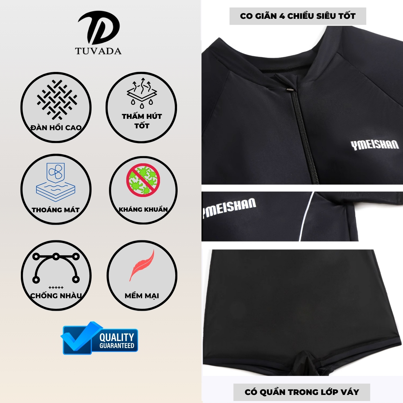 Chất liệu co giãn 4 chiều: mềm – thoáng – khô nhanh – bơi thoải mái.