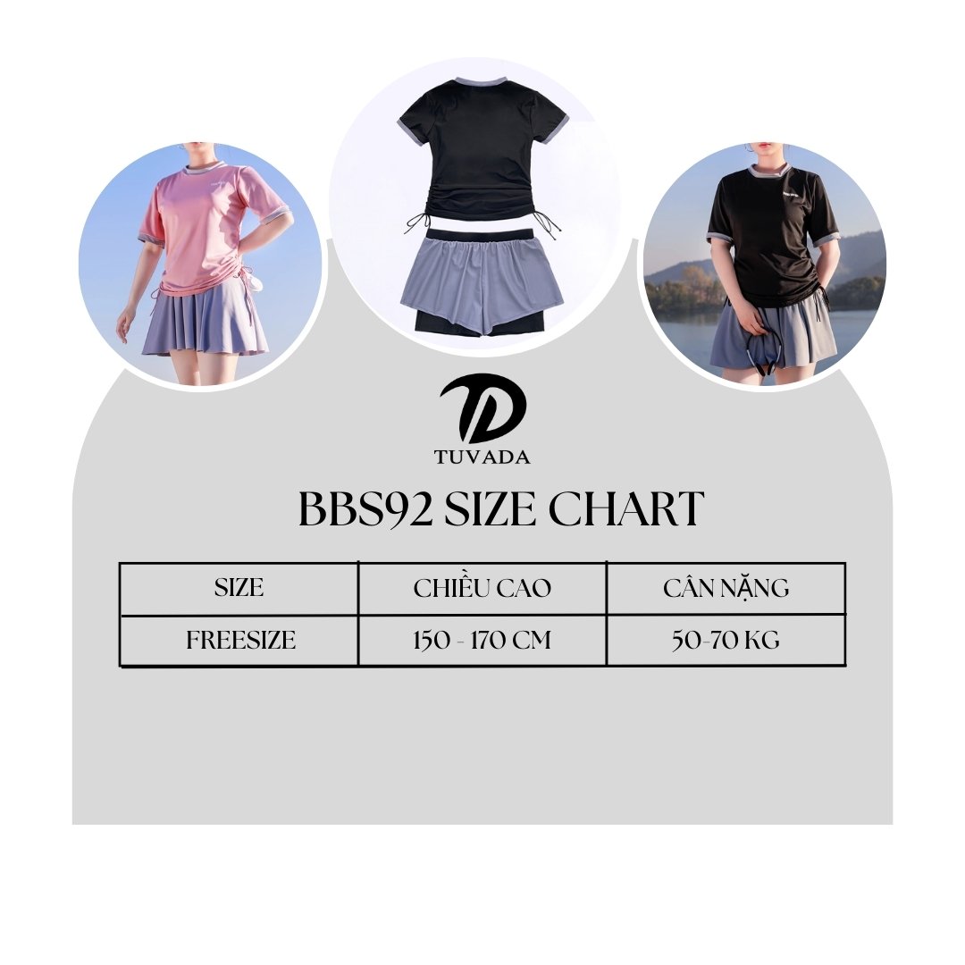 Mẫu BAQ92 là set đồ bơi 2 mảnh dành cho nàng muốn sự thoải mái nhưng vẫn kín đáo, lịch sự. Thiết kế hỗ trợ vóc dáng tốt, đặc biệt phù hợp cho nàng bigsize hoặc thích phong cách nhẹ nhàng, dễ mặc.