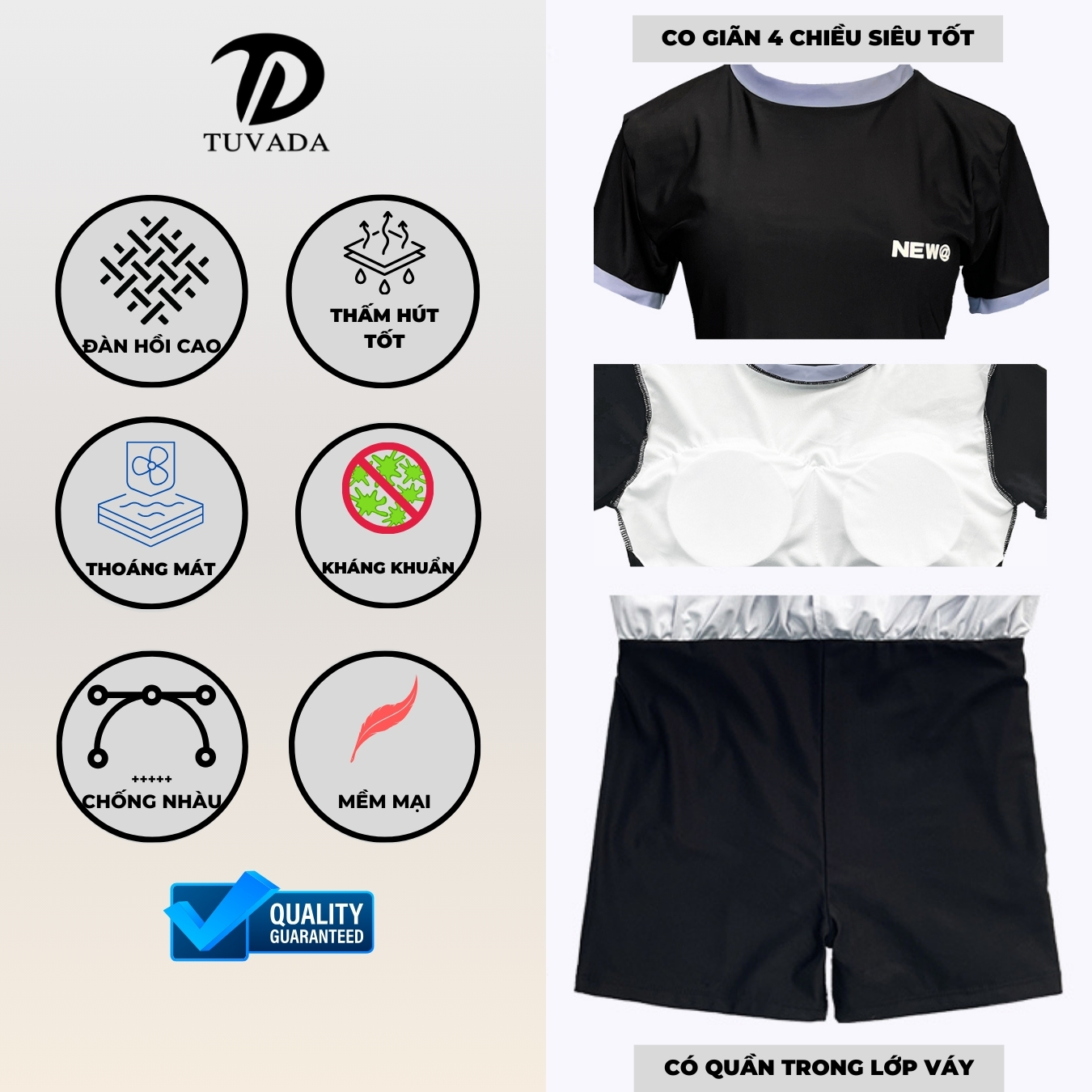 Đồ Bơi Nữ 2 Mảnh Bigsize Kín Đáo Tuvada – BAQ92