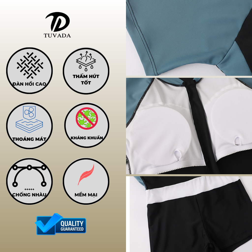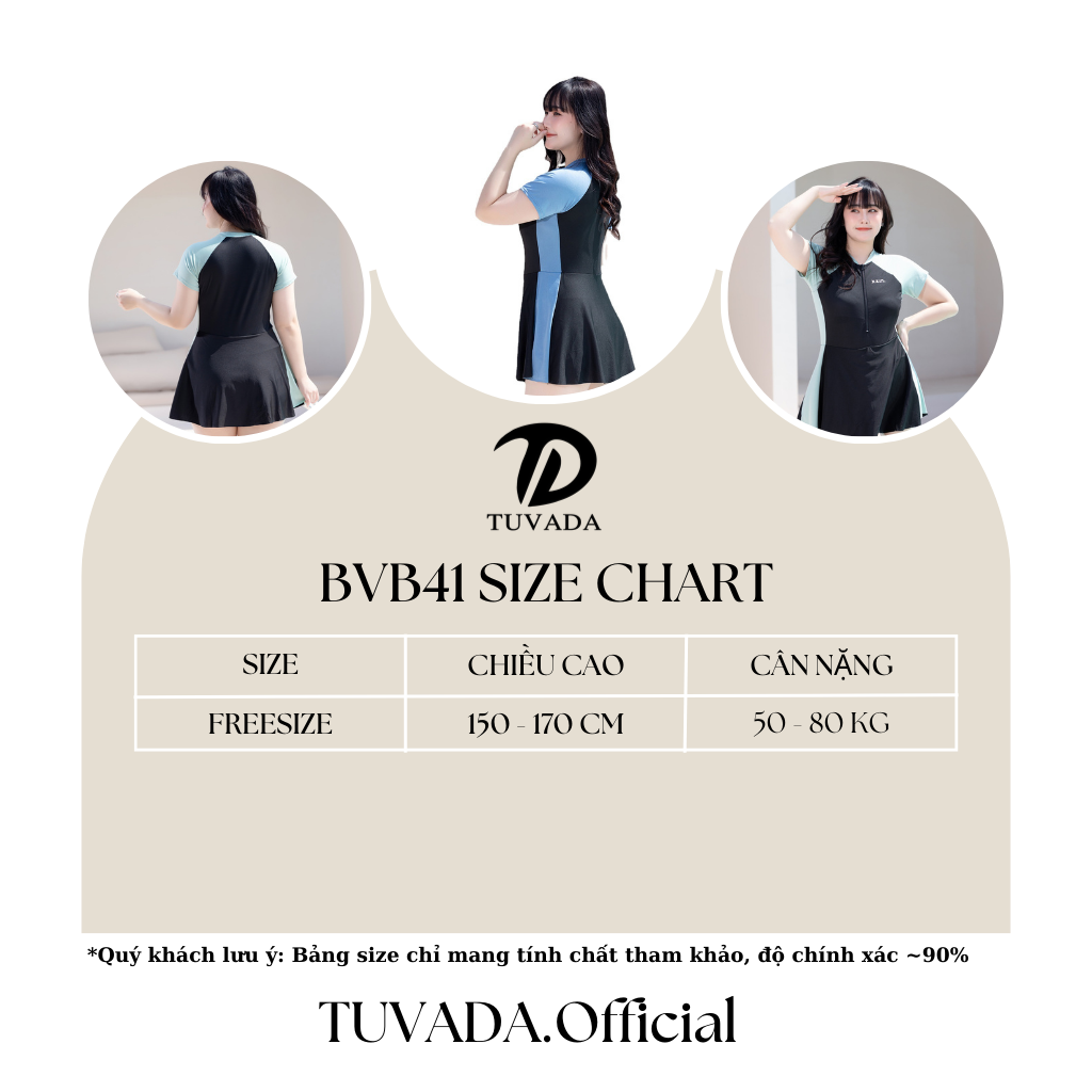 Đồ bơi nữ bigsize 1 mảnh Tuvada - BVB41 là dòng sản phẩm được thiết kế đặc biệt dành riêng cho những cô nàng có thân hình đầy đặn, giúp tôn vinh vẻ đẹp tự tin và che đi những khuyết điểm một cách khéo léo. Với thiết kế liền thân tối giản nhưng tinh tế, BVB41 tập trung vào sự thoải mái và khả năng định hình vóc dáng, giúp người mặc trông thon gọn và cân đối hơn.