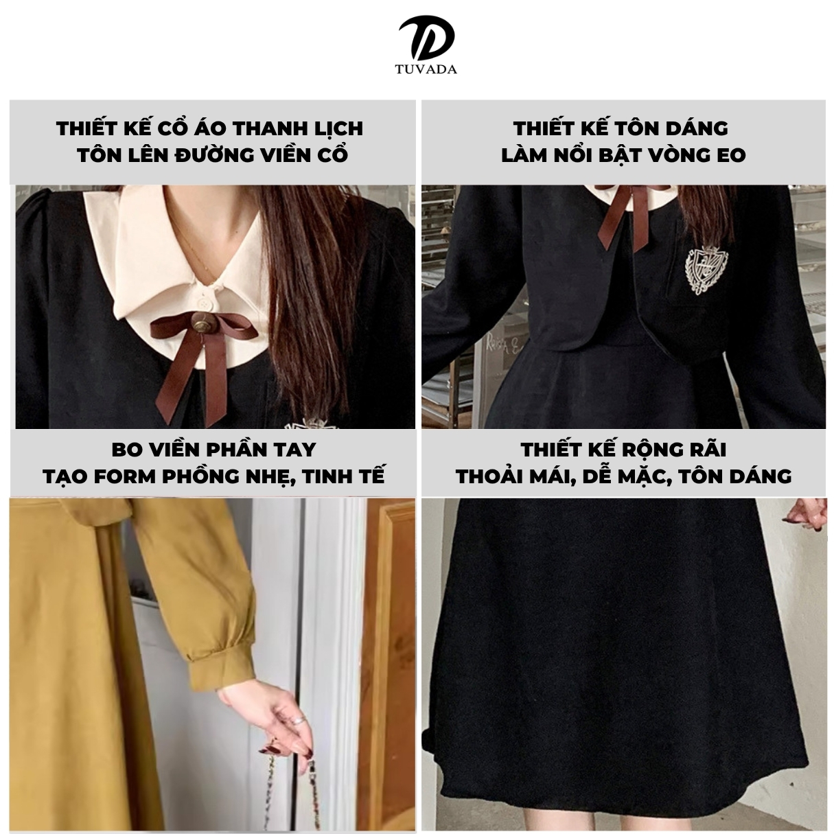 Váy dài tay thu đông cổ sơ mi sang chảnh Tuvada là hiện thân của vẻ đẹp đơn giản, nhưng không kém phần tinh tế, thanh lịch. Được thiết kế với kiểu dáng dài, phóng khoáng, nhưng vẫn mang nét duyên dáng tinh tế, váy dài này giúp người mặc tỏa sáng với phong cách đơn giản và nhẹ nhàng. Những chi tiết tinh tế từ cổ áo, tay áo cho đến chân váy xòe nhẹ tạo nên một tổng thể hoàn hảo, phù hợp cho những cô nàng yêu thích phong cách tối gián nhưng vẫn hiện đại.